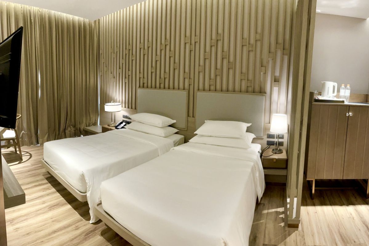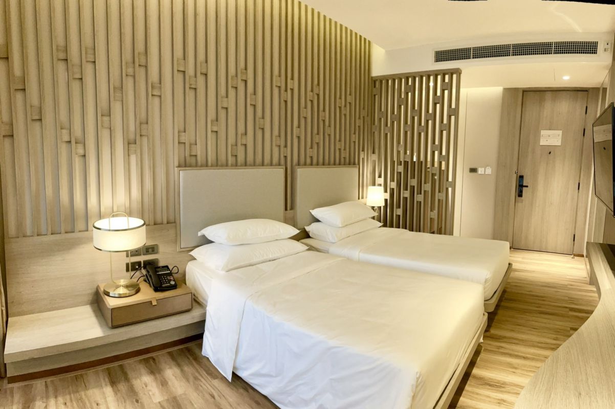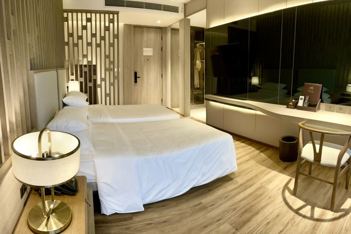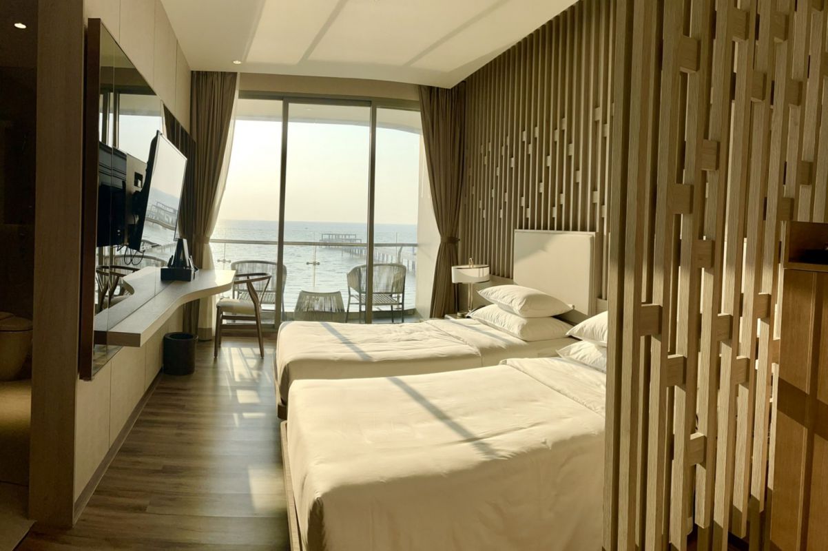 Views that stretch for sea. This double room features a balcony, electric kettle and spa bath.
